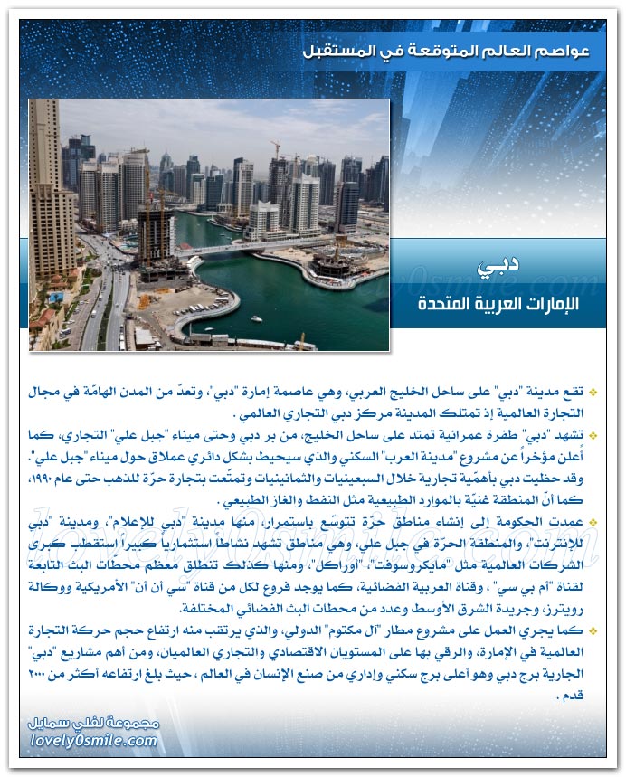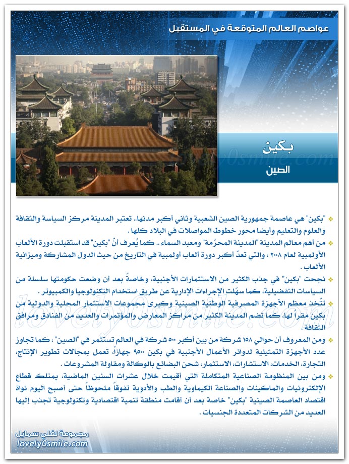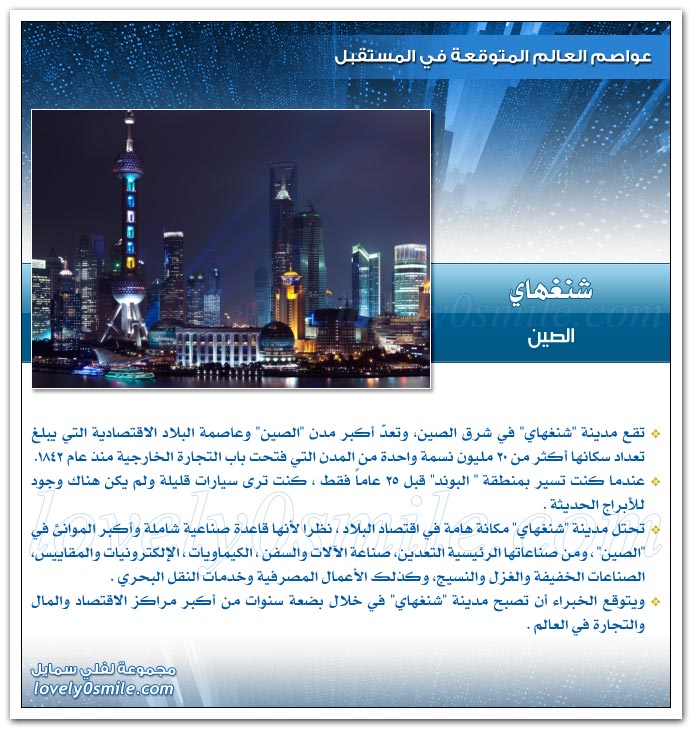 -لذا هيا لنتعرف على عواصم العالم الاقتصادية في المستقبل ....