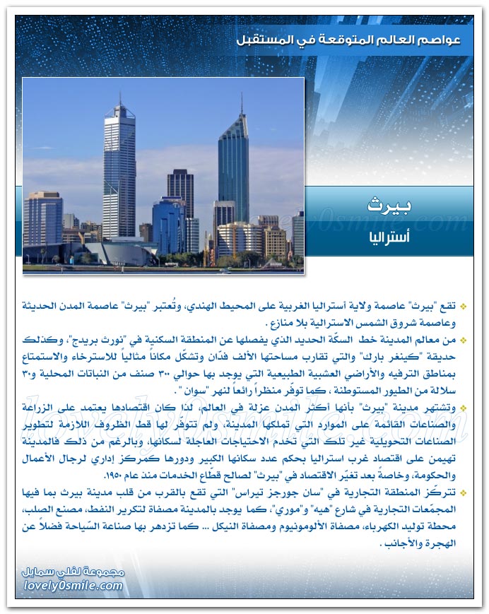 * شهدوا في الآونة الأخيرة ارتفاع سريع لعدد كبير من المدن الديناميكية العالمية الجديدة .. مما أعطى شعور للكثيرين أن عواصم عالم الغد لن تقتصر فقط على العالم الغربي ، وخاصة بعد أن ظهرت بقوة بلدان مثل الصين ، الهند , روسيا واستراليا ..